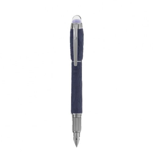 萬寶龍星際行者 SpaceBlue 系列的目光超越地球,放眼宇宙繁星,星際銀河仿似觸手可及。這個全新 StarWalker 系列為樹脂筆蓋和筆身披上嶄新外觀,極具硬朗氣息和未來感,設計讓人想起韋德曼交紋圖案的複雜結構,可謂自然界極為迷人的圖紋。所有金屬組件均鍍以深黑釕金屬,搭配珍貴樹脂上的啞光星際深藍色,呼應星際穹蒼的色彩。此外,筆蓋頂部的半圓頂也採用了星際深藍色,突顯半圓頂表面的萬寶龍標誌。這款鋼筆配以手工精製鍍釕 Au585 金質筆尖。
